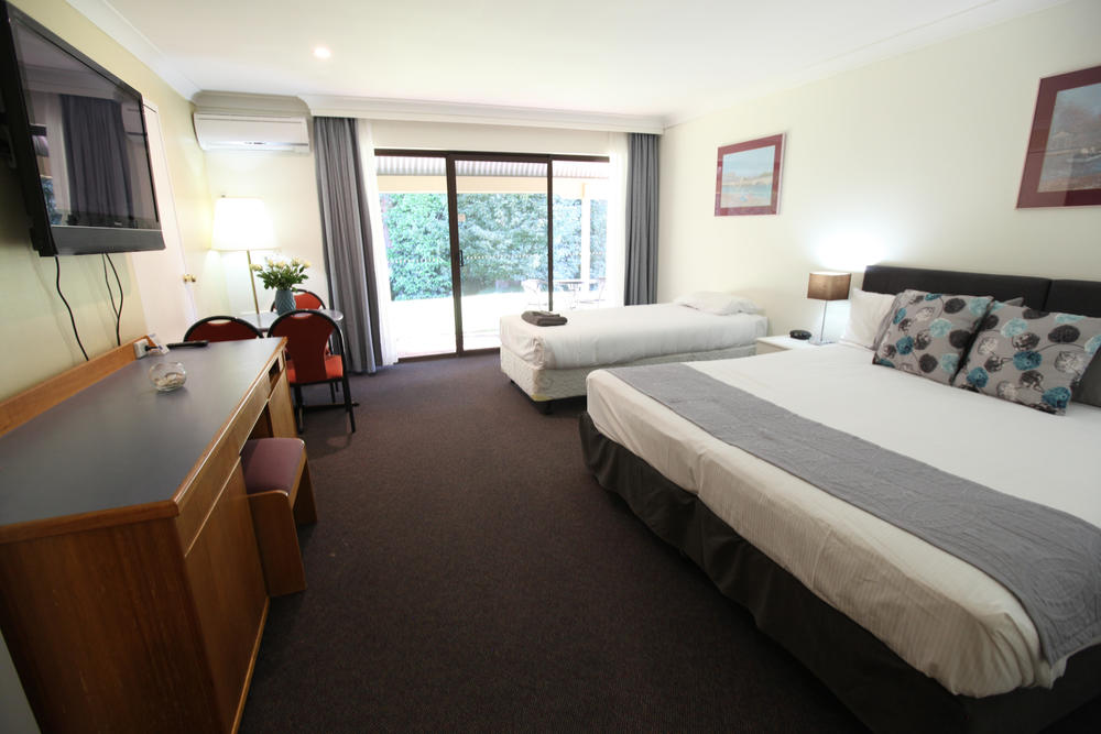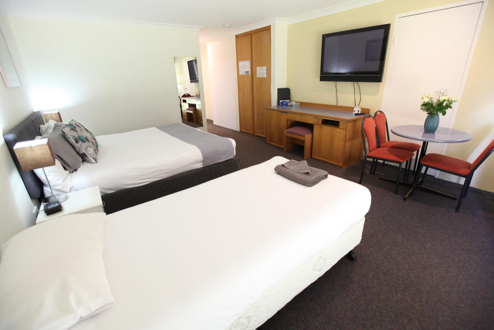 The Deluxe Queen Spa Suites consist of a combined bedroom and living area with one Queen bed and one Single bed as well as ensuite bathroom.